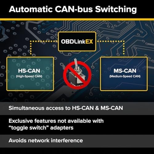 About this item CUSTOM-DESIGNED FOR USE WITH FORSCAN: Works with all FORScan compatible vehicles and is recommended by the FORScan Team DEALERSHIP-LEVEL DIAGNOSTICS: OBDLink EX supports all Ford protocols, modules, and advanced features of FORScan ELECTRONIC SWITCH allows FORScan to access all CAN buses simultaneously and enables advanced functions not possible with “toggle switch” adapters MAXIMUM THROUGHPUT — up to 20 times faster than “toggle switch” adapters ROCK-SOLID CONNECTION avoids data corruption and dropped packets